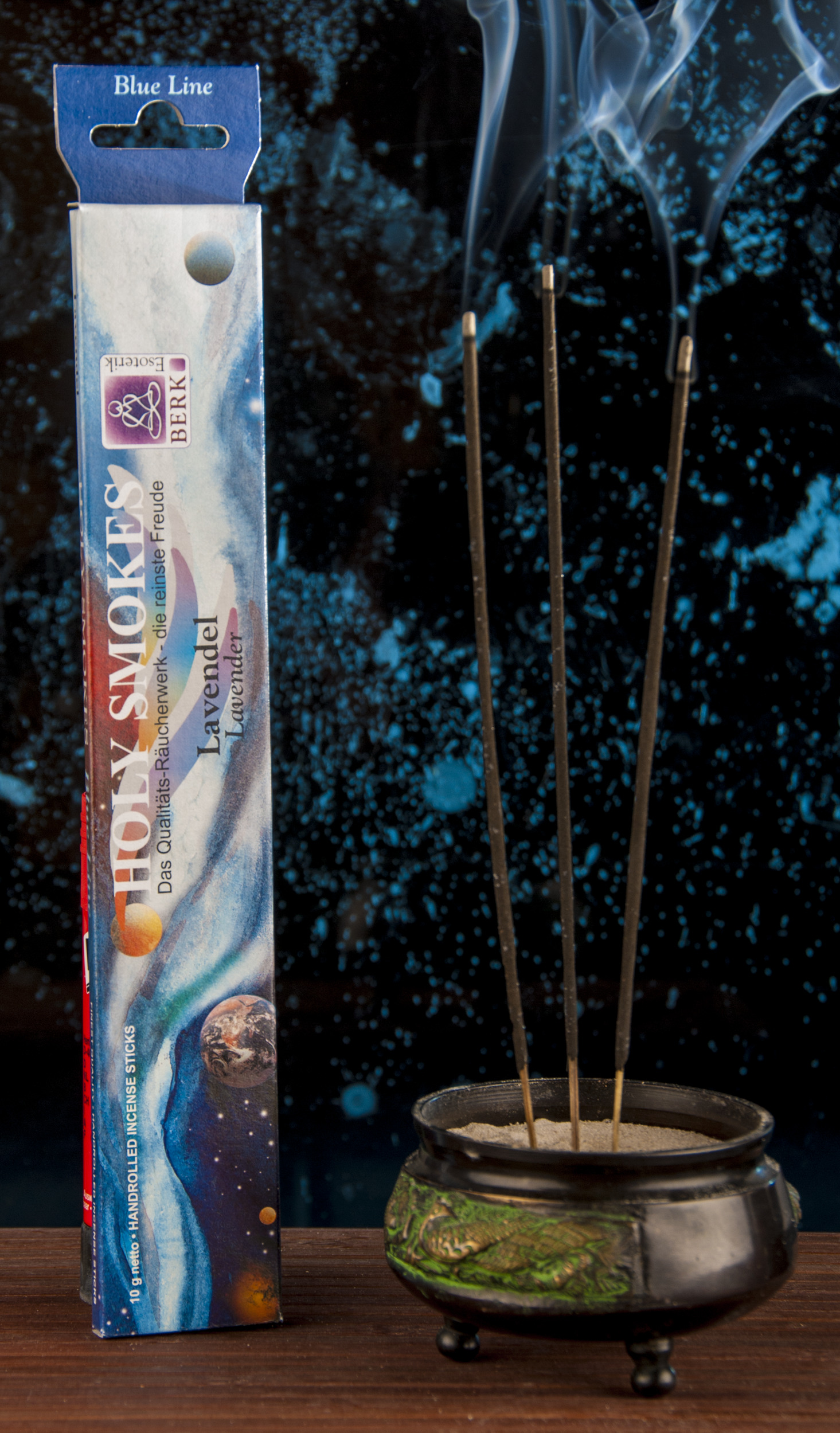 Für Holy Smokes Blue Line Räucherstäbchen werden natürliche Substanzen wie Hölzer, Blüten, Wurzeln, Harze, Kräuter und Öle gemischt und per Hand auf ein Bambusstäbchen gerollt. Lassen sie sich von diesen wunderbaren Düften inspirieren und erheben und verzaubern sie ihren Alltag mit einem Hauch von Exklusivität.